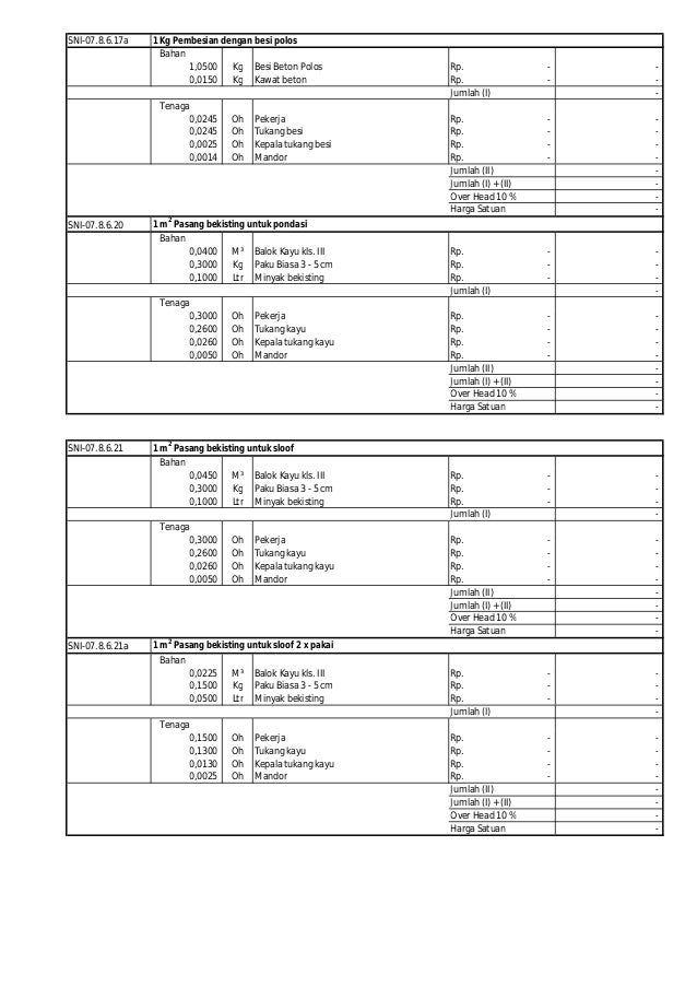 Harga Rp Penggalian tanah untuk pondasi. Total panjang sloof 6m 6m 3m 3m 3m 21m. Berikut ini disajikan contoh analisa harga satuan memasang 1m2 bekisting untuk plat lantai.