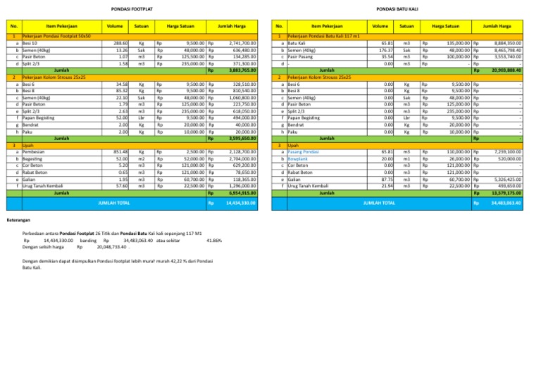 Biasanya dengan upah pekerjaan untuk bangunan rumah tinggal Rp 900000m2 tersebut sudah mencakup biaya pekerjaan pondasi pasangan dinding bata dan plesteran pekerjaan rangka dan penutup atap hingga pekerjaan finishing. Rab pondasi cakar ayam xls. Tagged ahs memasang 1m3 batu kosonganstamping analisis harga 1m3 anstamping harga pasang pondasi anstamping harga pondasi anstamping.